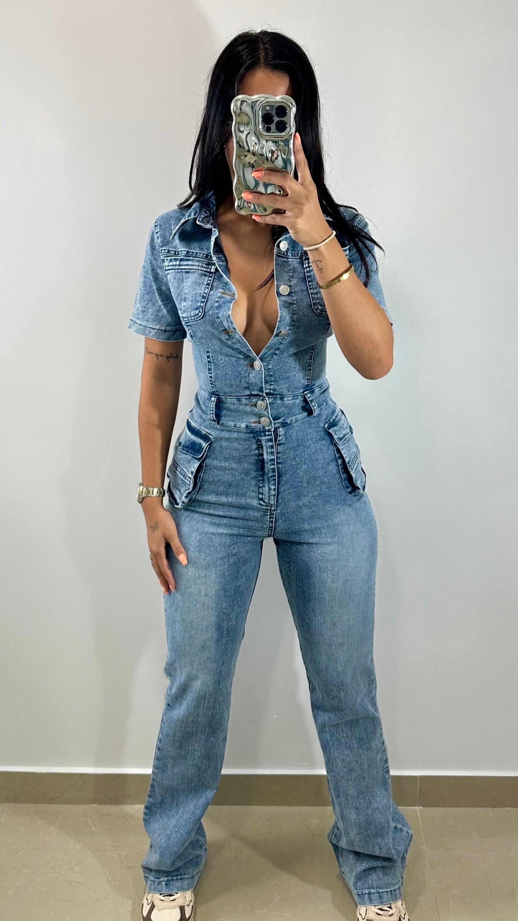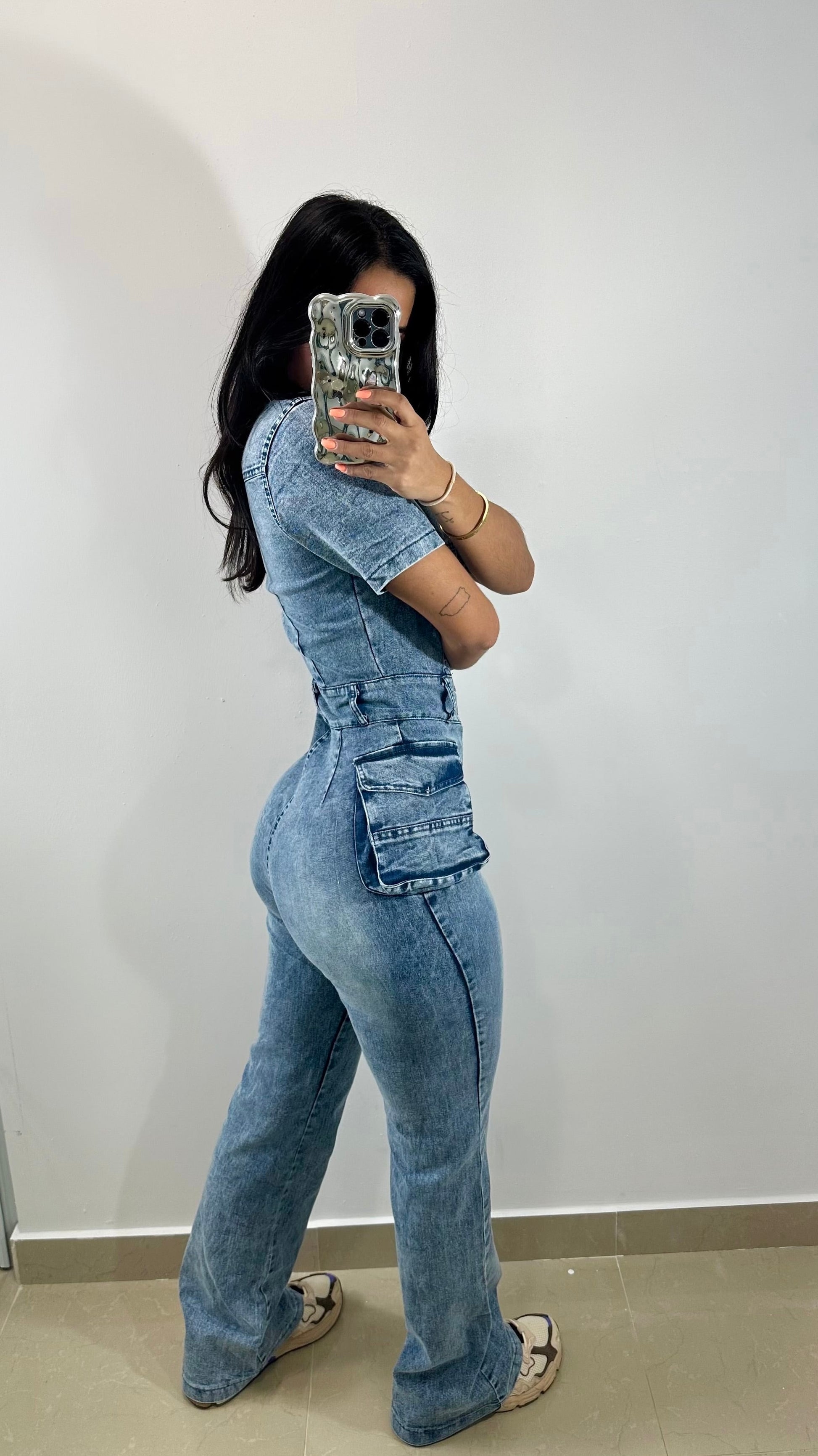 Denim cargo jumpsuit