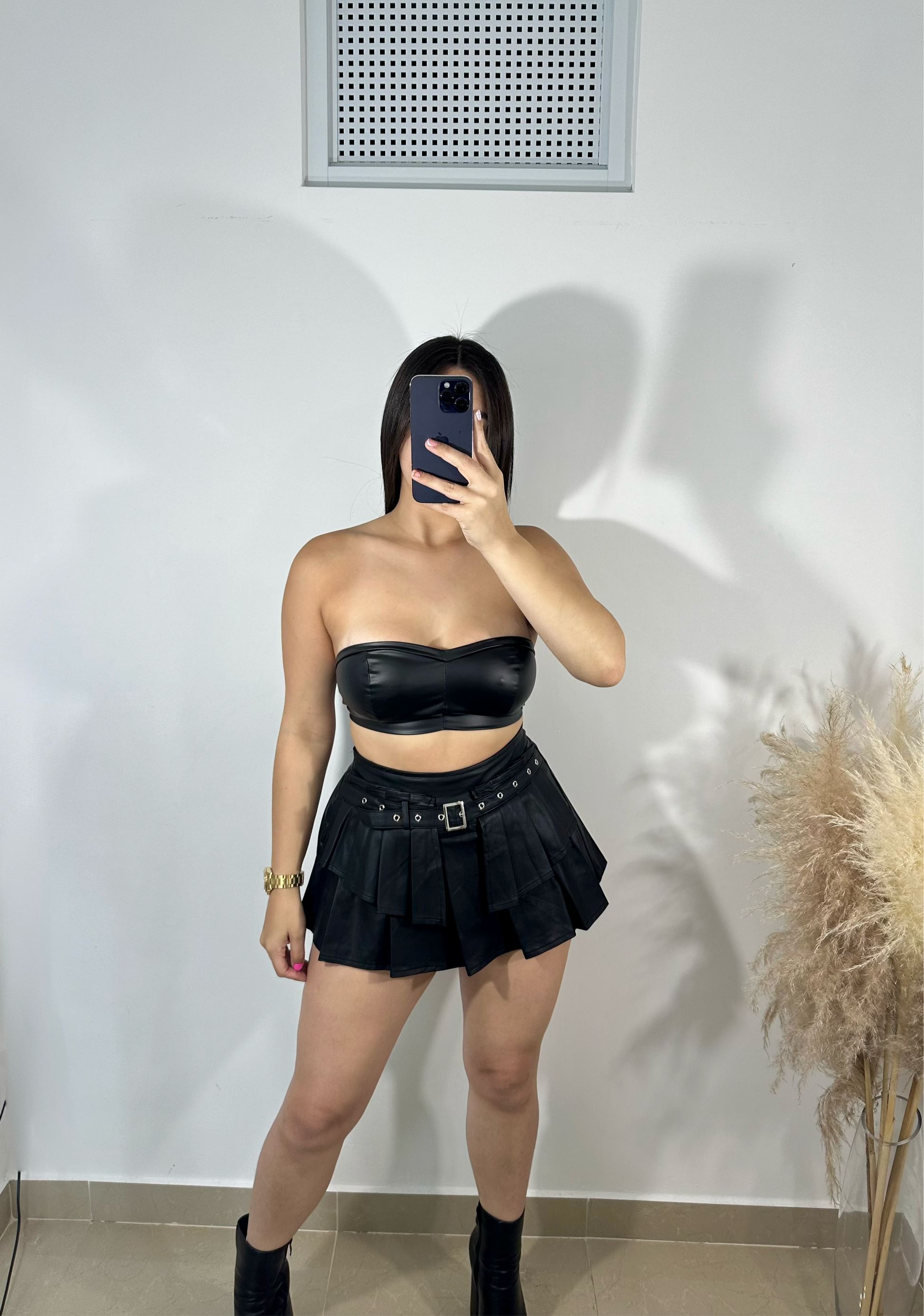 Leather mini skort
