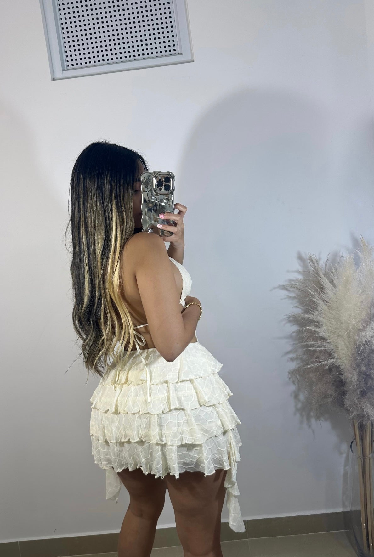 Corre pequeño se ajusta en busto y espalda, modelo uso size L