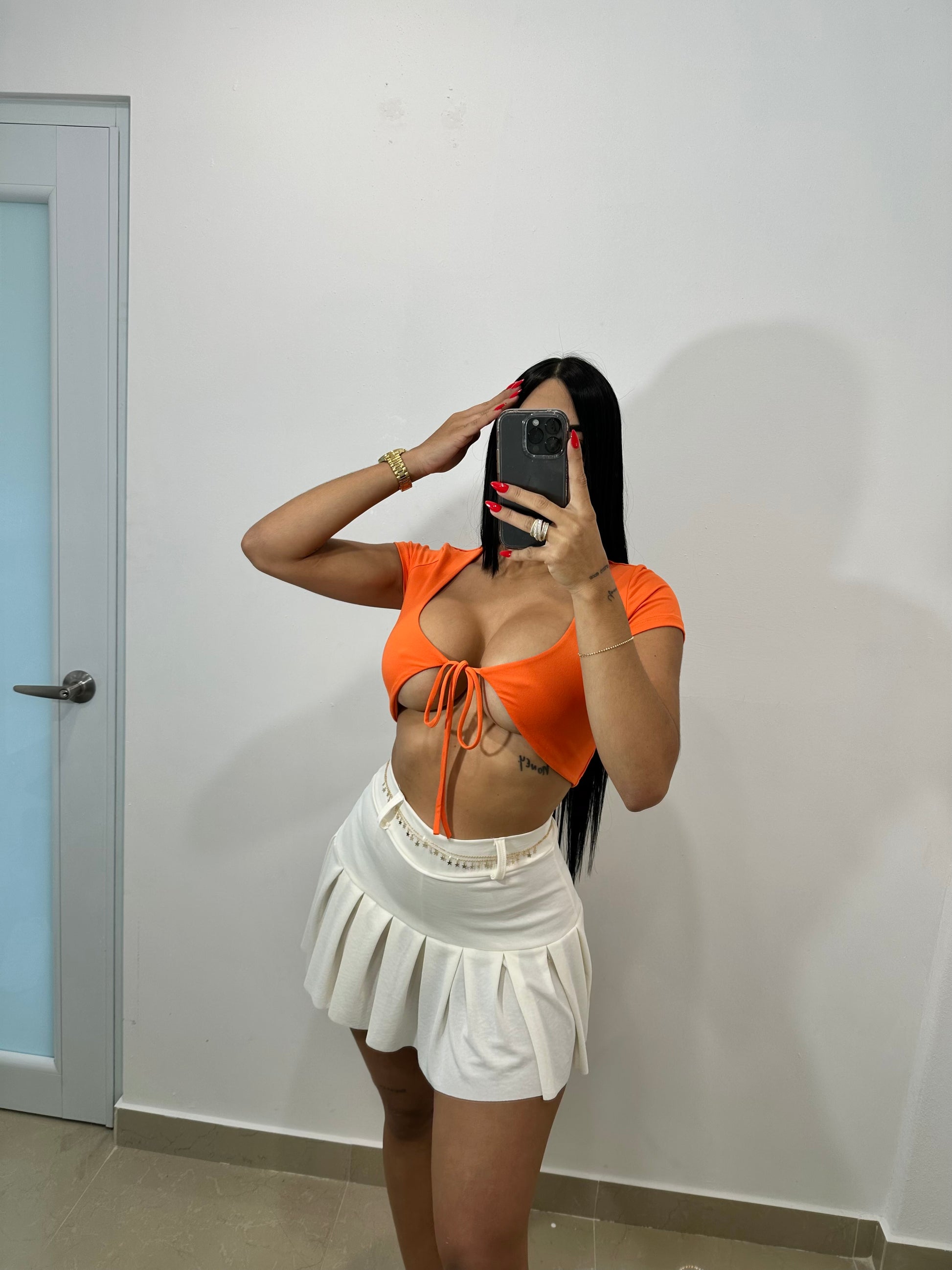 Corre pequeño, se ajusta alfrente , es doble tela, modelo uso size M