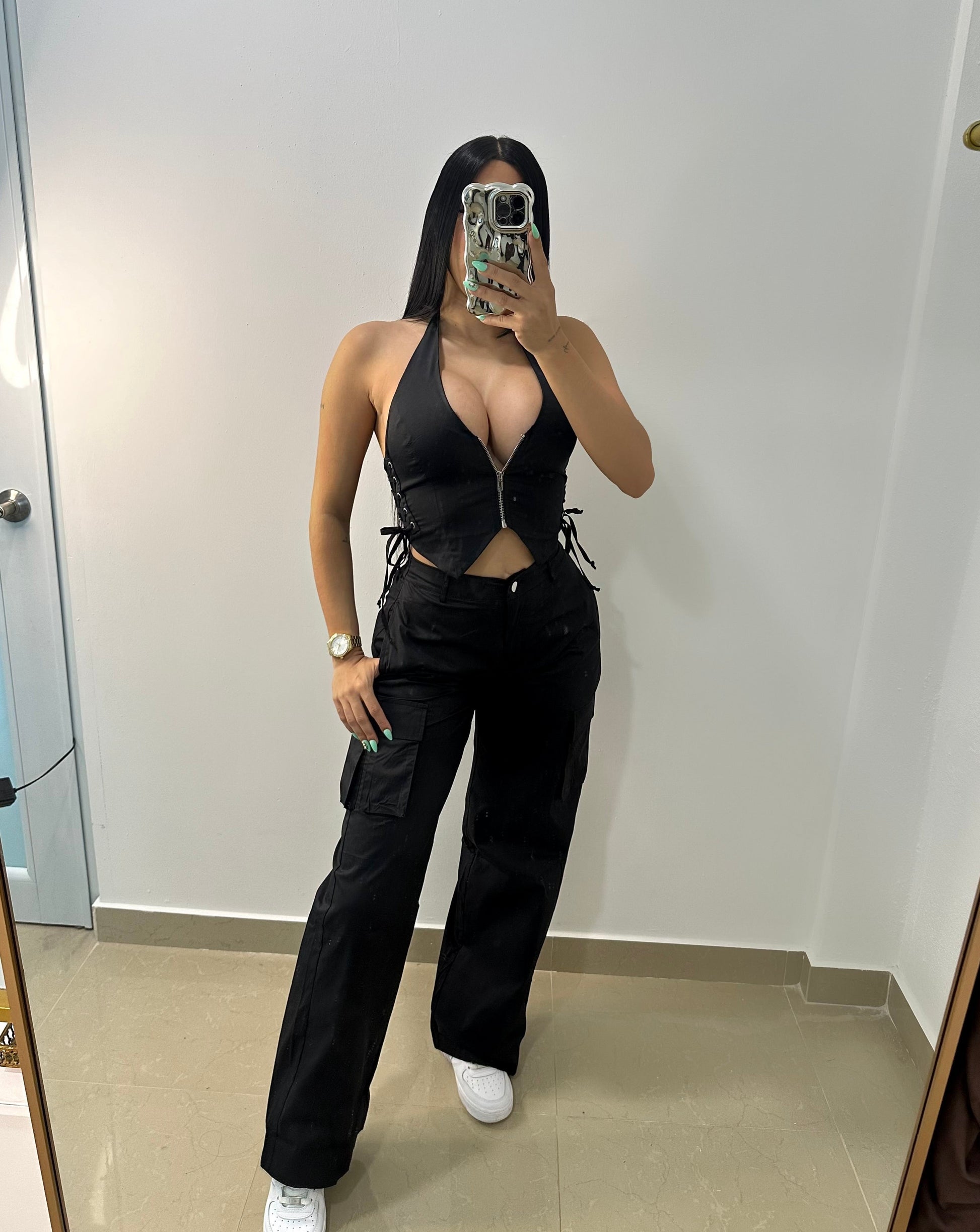 Top se ajusta a gusto en el cuello, modelo uso size S